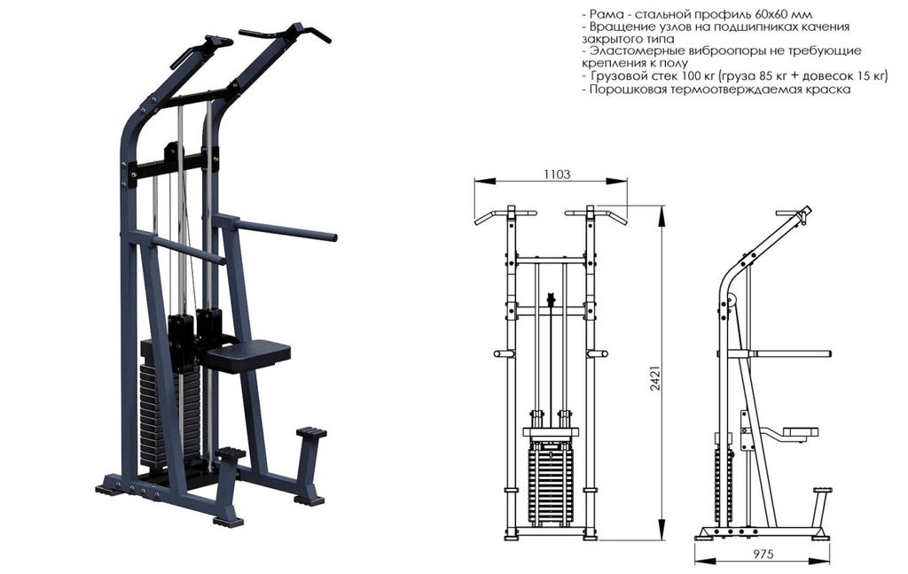 • Конструкция тренажера изготовлена из стального профиля 60х60мм;