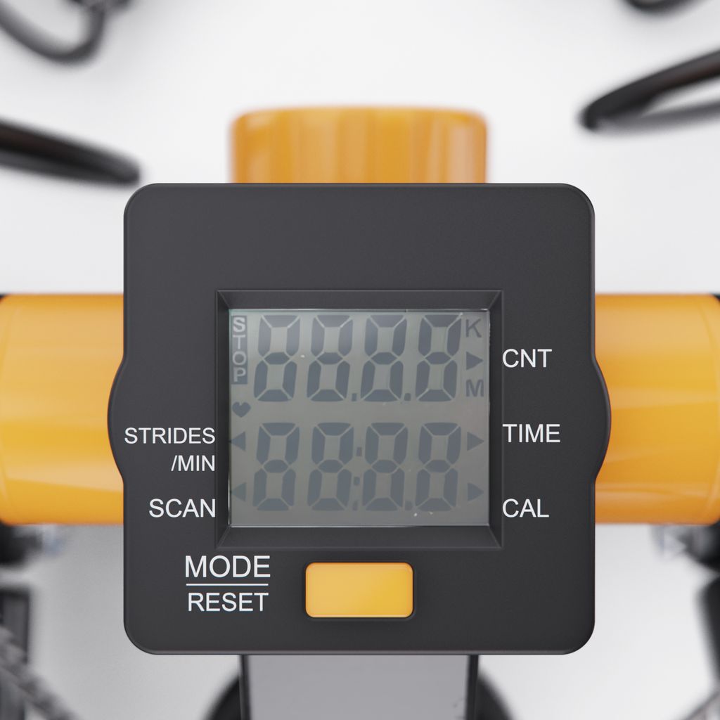 На монохромном LCD-дисплее отображаются все ключевые параметры: время тренировки, количество шагов, шагов в минуту и сожжённые калории. Это позволяет легко отслеживать прогресс и контролировать эффективность каждого занятия. В комплекте 1 батарейка типа LR44.