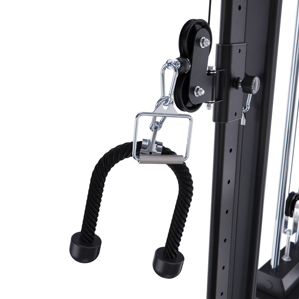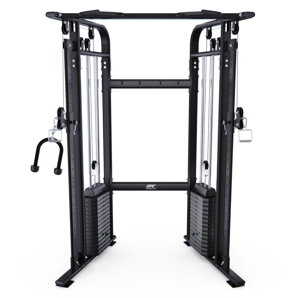 Кроссовер DFC D71506 — это силовая рама со встроенным весом для домашнего использования, которая позволяет прокачивать все мышцы тела благодаря возможности регулировки. На тренажёре можно выполнять различные упражнения, такие как тяга руками (в разных положениях), приседания с весом, махи, упражнения на укрепление мышц кора и подтягивания. Максимально допустимая нагрузка на тренажер – 150 кг. и максимально допустимая нагрузка на турник – 150 кг.