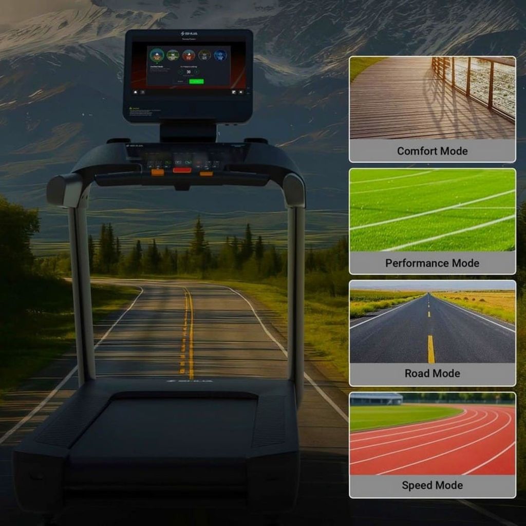 • Новая запатентованная система изменения амортизации бега - адаптивная дека FlexAir. В зависимости от режима тренировки за миллисекунды реагирует на изменение режима тренировки и обеспечивает плавный переход между режимами жесткости в течении 10 секунд. Основные режимы - комфортный, дорога, производительный, бег.