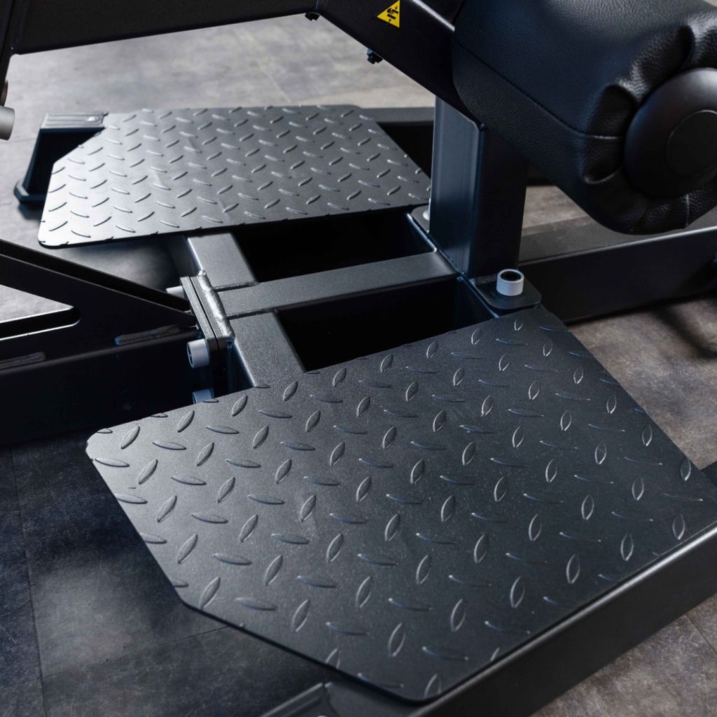 • На раме закреплены ребристые металлические пластины – опоры для ног, для устойчивости и защиты спортсмена от скольжения при выполнении упражнения.