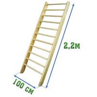 Высота конструкции 220 см; Ширина 100 см; Количество перекладин 8 шт; Расстояние между осями перекладин 200 мм; Боковины стенки 135х35 мм; Круглое сечение перекладин 40 мм. ... -