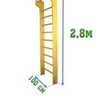 Высота стенки 280 см; Ширина стенки 100 см; Количество перекладин 10 шт; Расстояние между осями перекладин 200 мм; Боковины стенки 135х35 мм; Круглое сечение перекладин 40 мм. ...