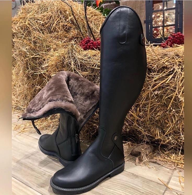 Кожаные сапоги для верховой езды разработаны с учётом всех требований безопасности и комфорта всадника .Изготавливаются из высококачественной натуральной кожи воловьей. Кожа обеспечивает:отличную посадку по ноге;долговечность обуви;«дыхание» ноги (в отличие от резиновых или синтетических аналогов);постепенную адаптацию к форме стопы при носке .Каблук невысокий — предотвращает проскальзывание в стремени.Шнуровка спереди — для лучшей фиксации, комфортно для любого подъёма. Эластичная резинка по длине сапога — комфортно застегнуть на икреПреимущества:надёжно фиксируют ногу, обеспечивают контакт с лошадью;защищают от натираний и механических воздействий;сочетают безопасность, комфорт и классический стиль.Цвета: чёрный