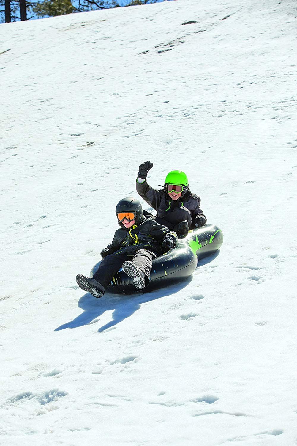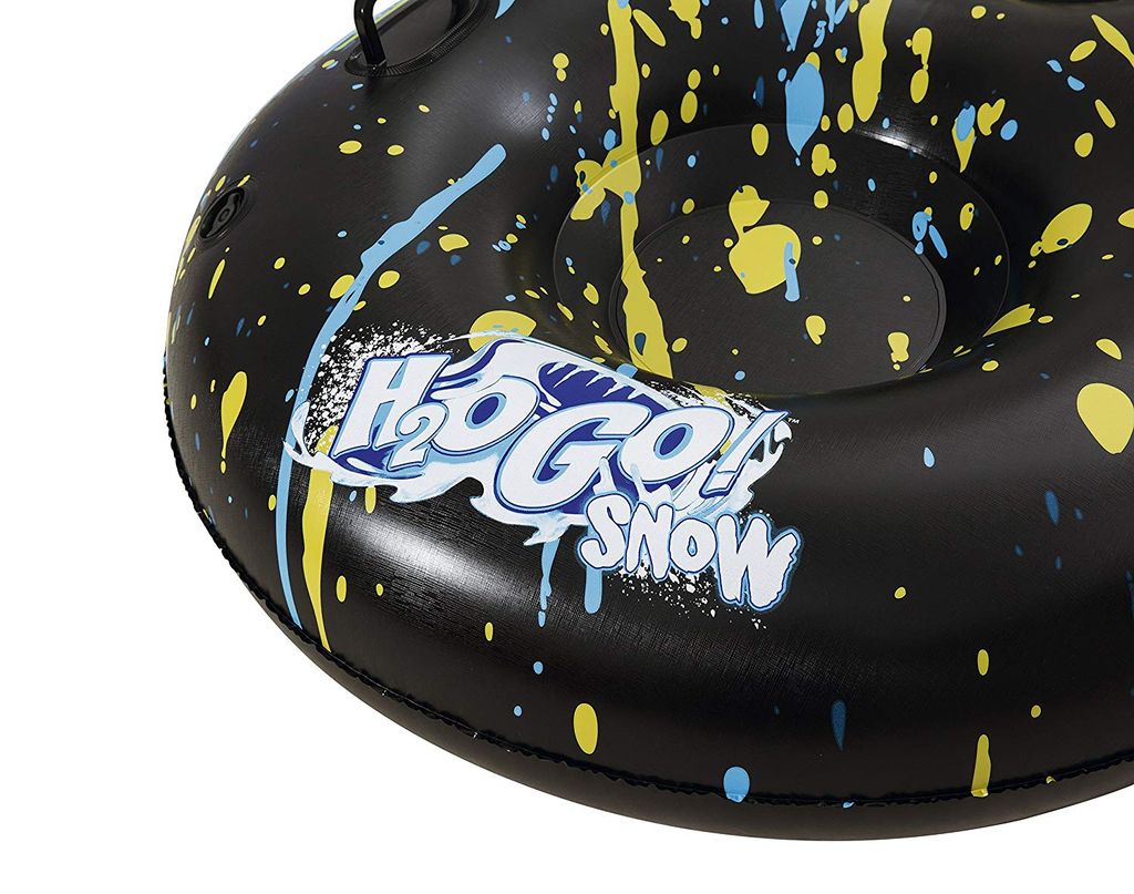 Тюбинг выполнен из принтованной морозостойкой ткани высокой плотности. На верхнюю ткань нанесено покрытие, которое отталкивает воду и грязь. Камера для тюбинга не имеет токсичного запаха в отличии от автомобильной камеры.Накачивать можно,как автомобильным(велосипедным) насосом,так и насосом для матраса.