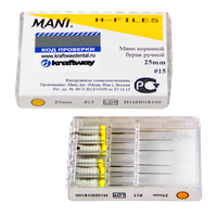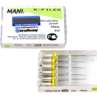 К-файлы, дрильбор ручной Мани (Mani K-Files) №15, длина 25 мм, ISO-15, 6 шт/упаковка, Япония (Mani, Inc.) 0322004М