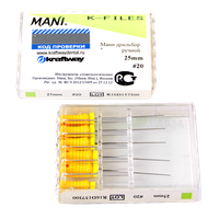 К-файлы, дрильбор ручной Мани (Mani K-Files) №20, длина 25 мм, ISO-20, 6 шт/упаковка, Япония (Mani, Inc.) 0322005М