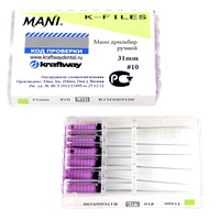 К-файлы, дрильбор ручной Мани (Mani K-Files) №10, длина 31 мм, ISO-10, 6 шт/упаковка, Япония (Mani, Inc.) 0324003М