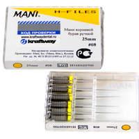 Н-файлы, бурав корневой ручной Мани (Mani H-Files) №08, длина 25 мм, ISO-08, 6 шт/упаковка, Япония (Mani, Inc.) 0332001М