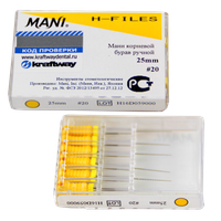 Н-файлы, бурав корневой ручной Мани (Mani H-Files) №20, длина 25 мм, ISO-20, 6 шт/упаковка, Япония (Mani, Inc.) 0332004М