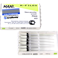 К-файлы, дрильбор ручной Мани (Mani K-Files) №15, длина 31 мм, ISO-15, 6 шт/упаковка, Япония (Mani, Inc.) 0324004М