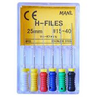 Н-файлы, бурав корневой ручной Мани (Mani H-Files) №15-40, длина 25 мм, ISO-15-40, 6 шт/упаковка, Япония (Mani, Inc.)