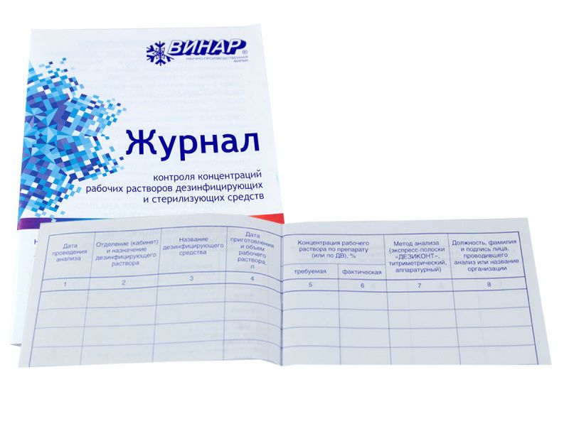 Журнал контроля концентраций рабочих растворов дезсредств (8 листов), формат А5, Россия (ООО "НПФ "Винар")