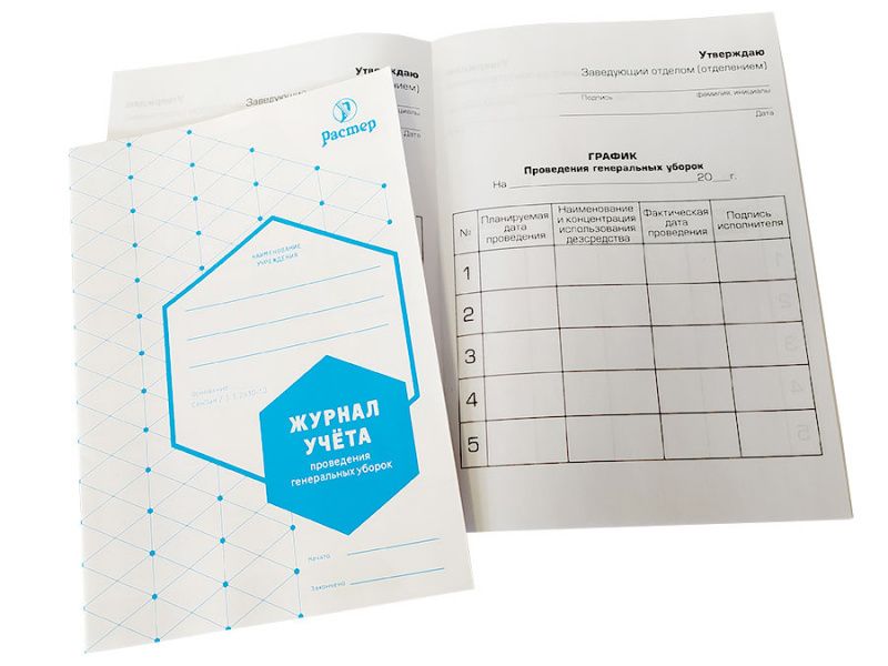 Журнал учёта проведения генеральных уборок, формат А5, 12 страниц, Россия (ООО "Растер")