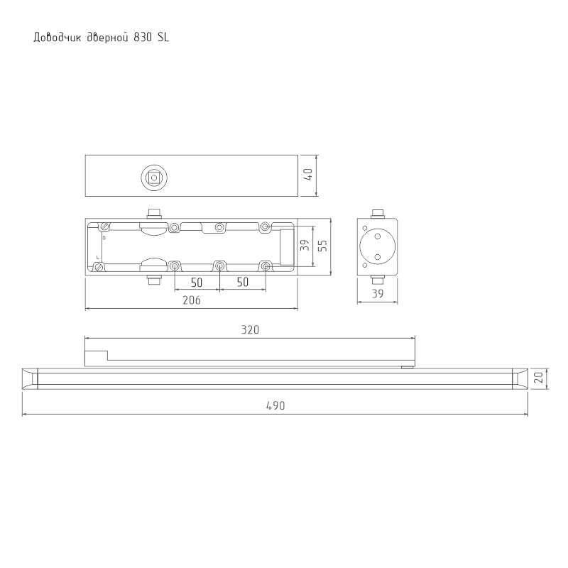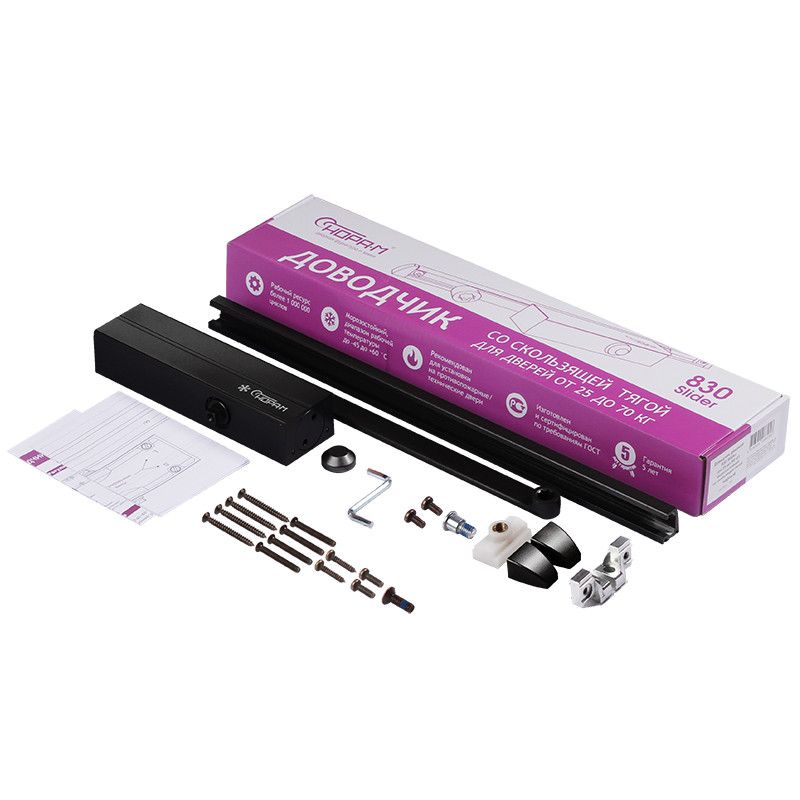 ISP 830 Slider (черный) Доводчик дверной, усилие EN2-3 для дверей 25-80 кг, со скользящей тягой