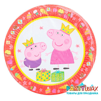Одноразовые бумажные тарелки Пеппа-принцесса, 23 см - 6 шт.