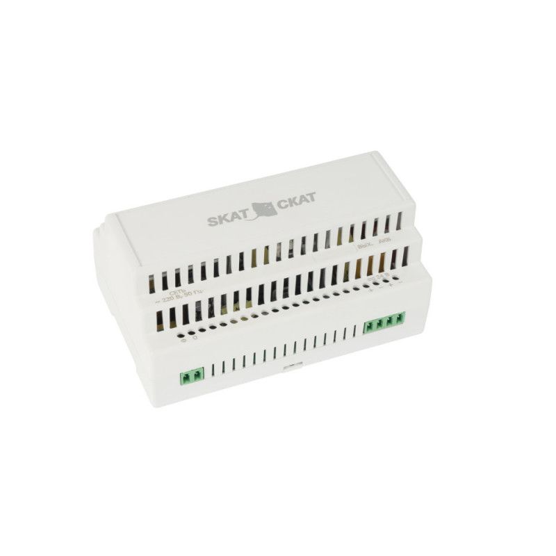 SKAT-24-4,0-DIN 24В 4А пластиковый корпус под DIN рейку 35 мм Внешний АКБ от 12Ач (2шт). Защита от КЗ в нагрузке, защита АКБ от глубокого разряда и переполюсовки. Размер 139х89х65 мм