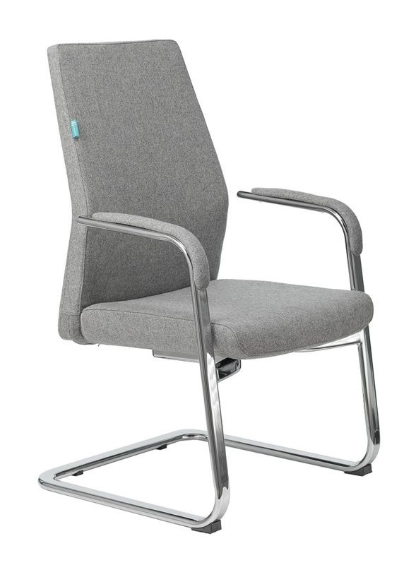 Кресло Бюрократ _JONS-LOW-V серый низк. спин. полозья металл хром