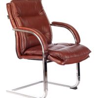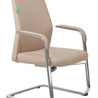 Кресло Бюрократ _JONS-LOW-V бежев. кожа низкая спинка полозья металл хром