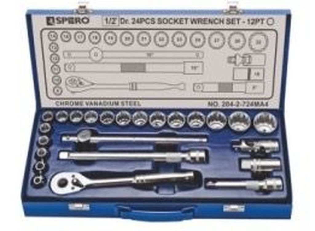 набор головок торцевых, 12-гранных, 24 предмета, 1/2" SAE